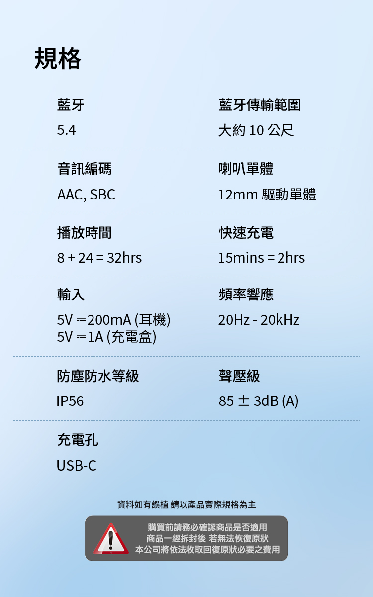 · 單耳僅 5.4g 配戴無負擔|自動排水功能