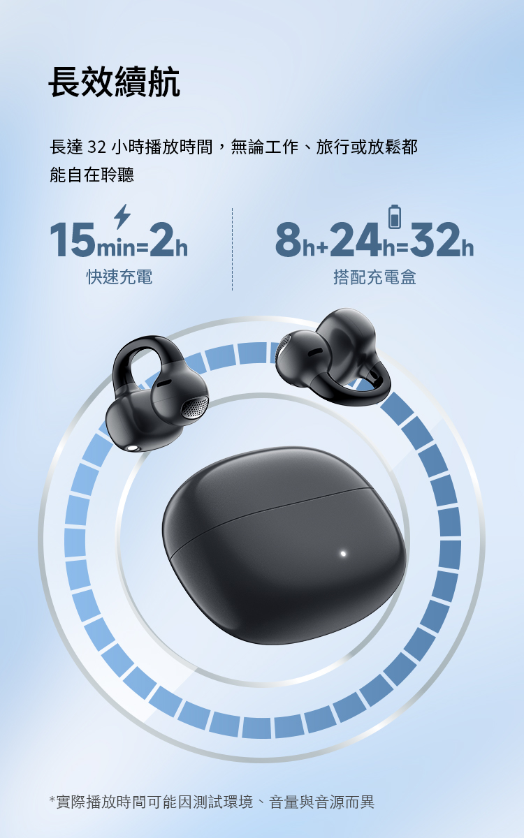 · 32H 長續航;充電 15 分鐘 使用 2 小時