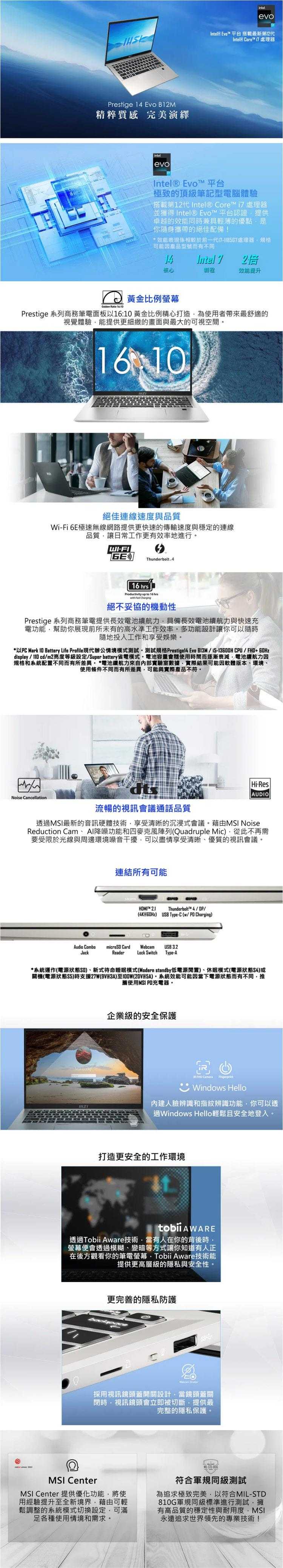 | 產品料號 | Prestige 14Evo B12M-434TW-SS71280P16GXXDX11P |
