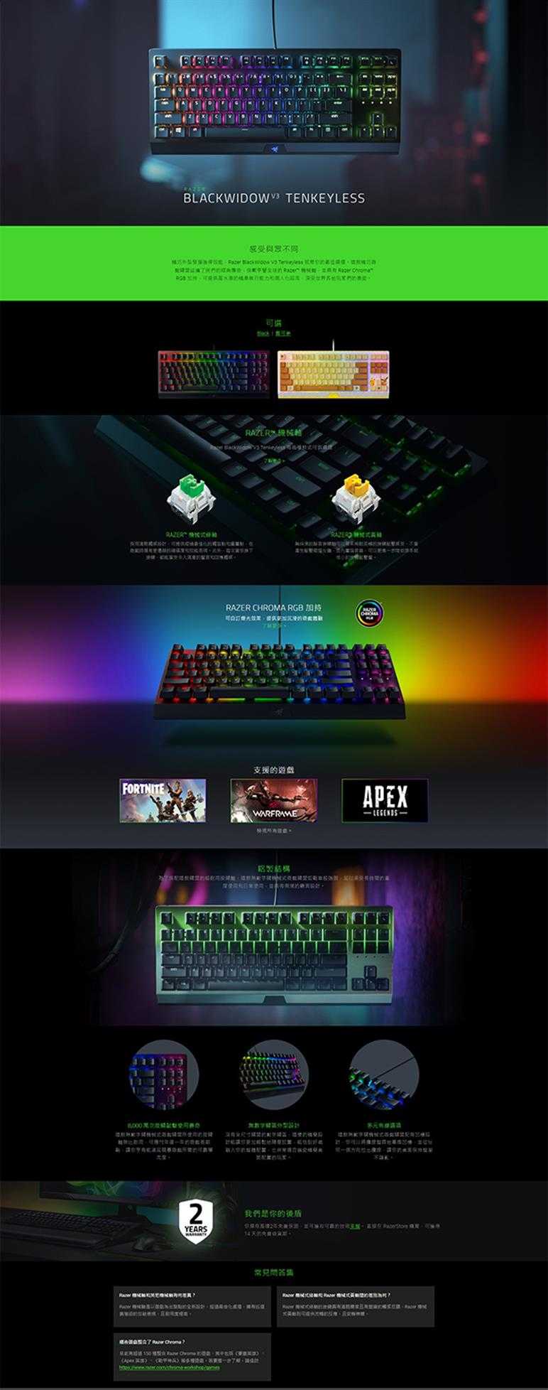 | 按鍵軸類型 | Razer™ 機械式綠軸 |
