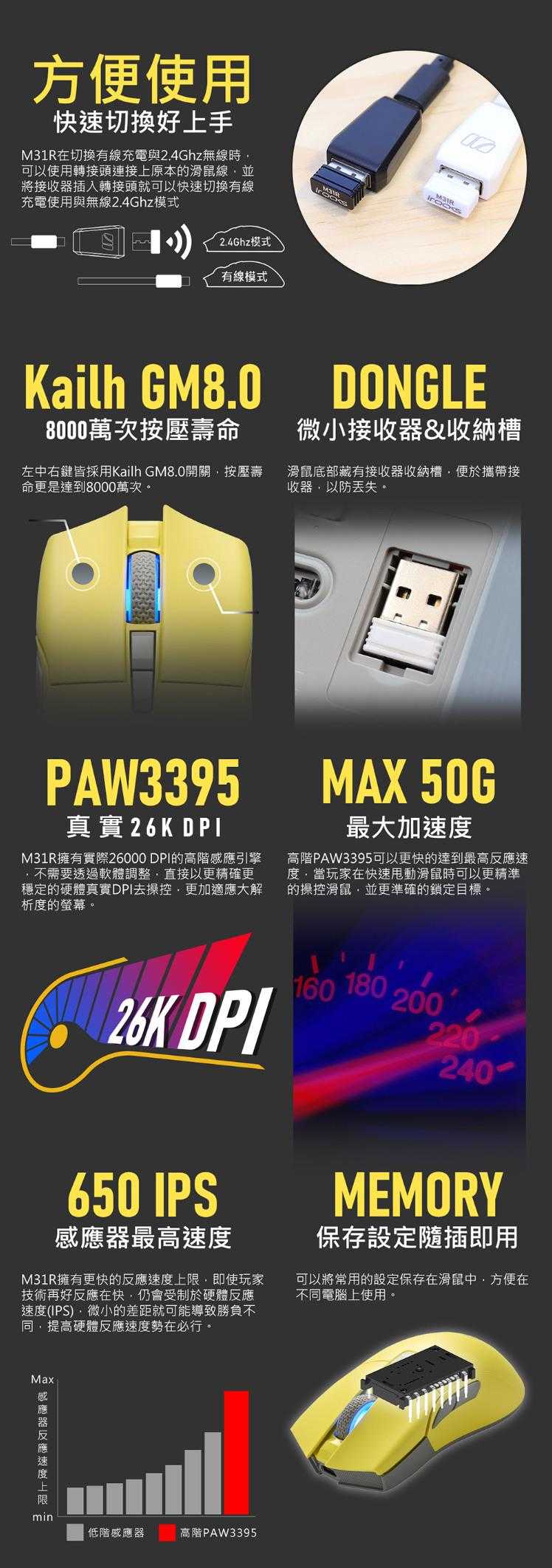 ●採用高階PixArt PAW3395光學引擎,高達26,000 dpi真實解析度
