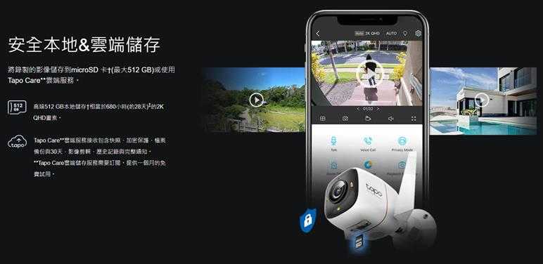 - 靈活儲存影像 - 將影像儲存到microSD卡(最大支援512 GB)†或使用Tapo Care雲端服務**
