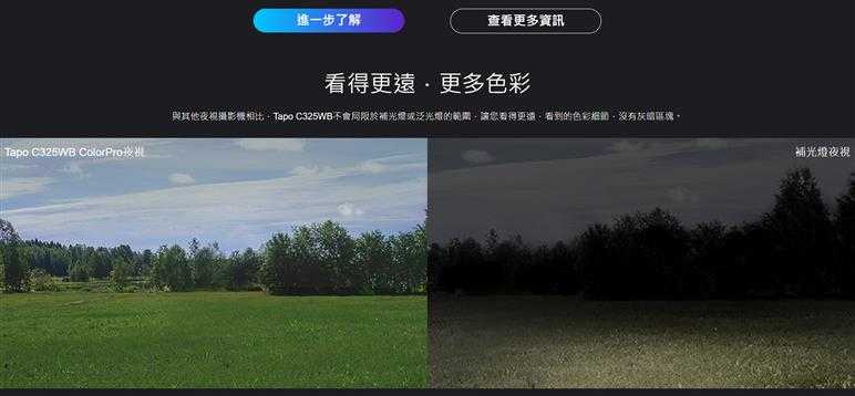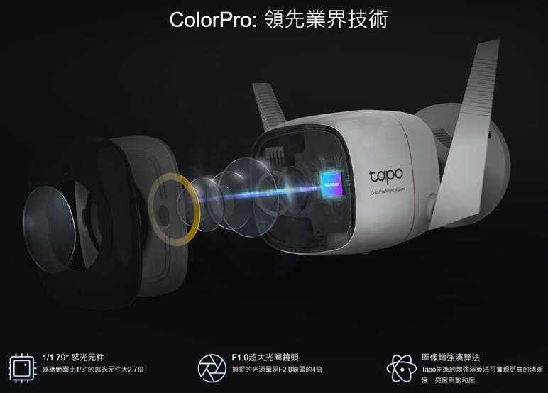 - ColorPro全彩夜視 - 低光源環境下,沒有任何閃光燈的情況,也能顯示明亮的彩色影像,漆黑的夜晚感受日間的清晰度