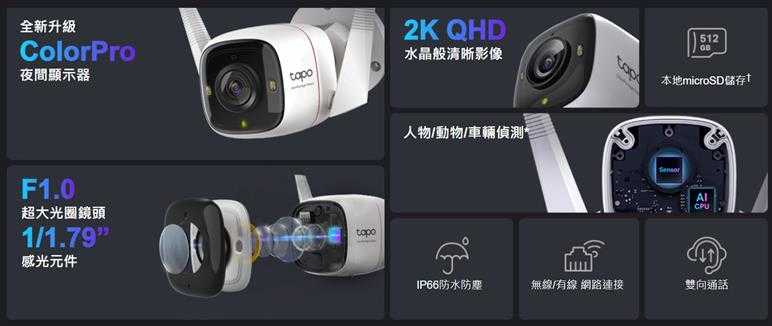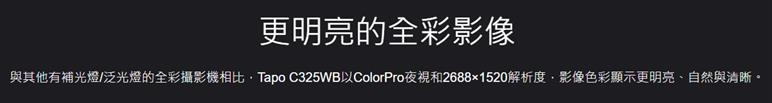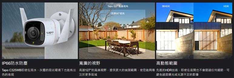 - 2K QHD即時影像 - Tapo C325WB採用2688×1520解析度,捕捉更清晰的影像,像素比1080p多2倍