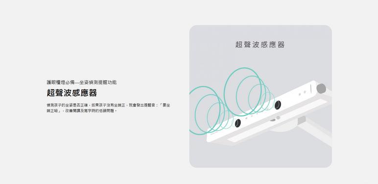 ●坐姿提醒:內建三組感應器,適時語音提醒孩子調整正確坐姿。