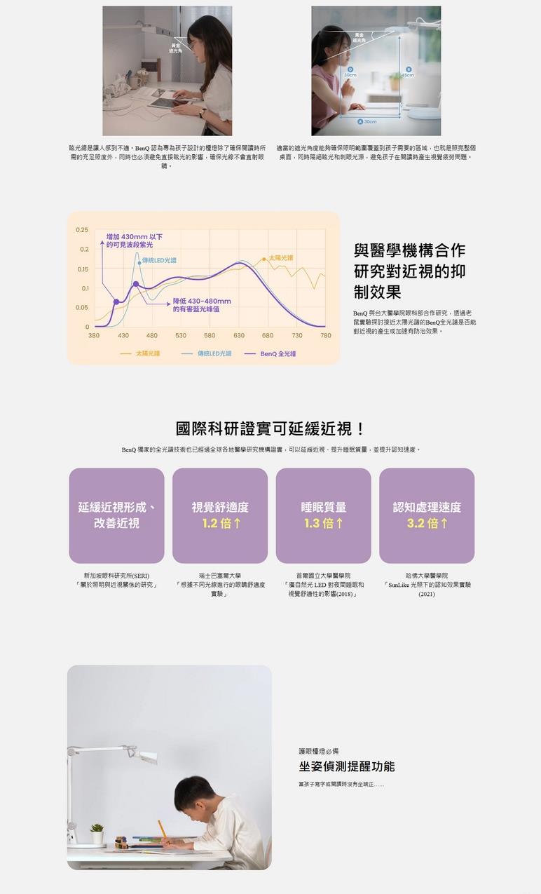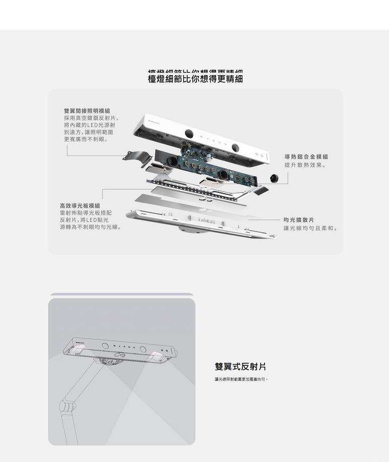 ●自動調光:即時偵測桌面亮度,自動輸出最適光線,均勻照亮。