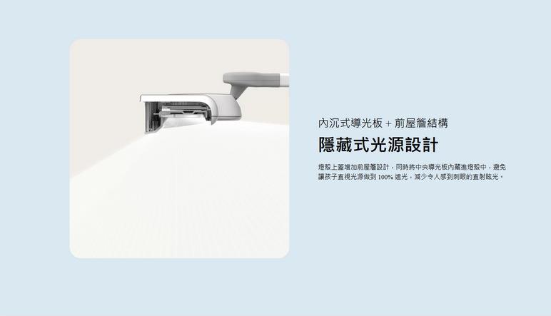 ●內沉式導光板 + 前屋簷結構,隱藏式光源設計