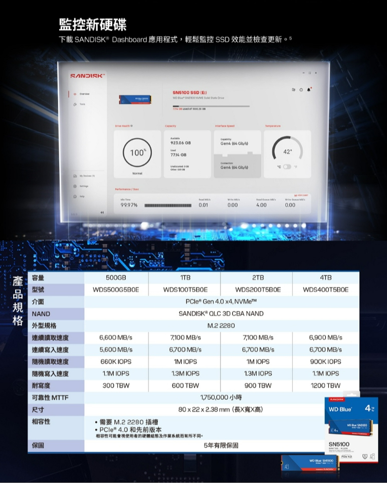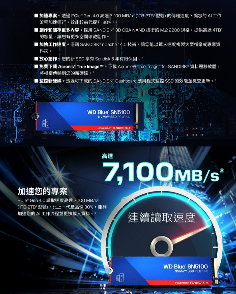 ● 讀寫速度:讀7,100MB/s,寫6,700MB/s