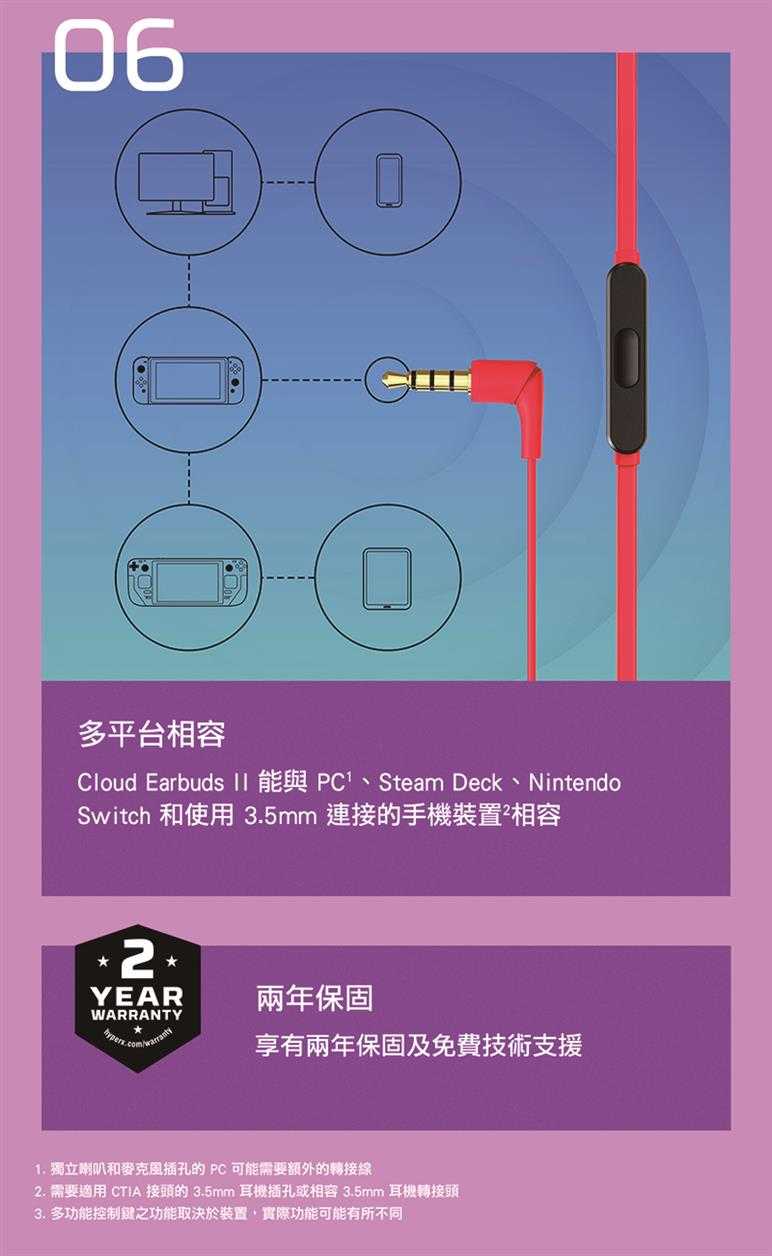 線長及類型 :1.2m、3.5mm 耳機線(內建)