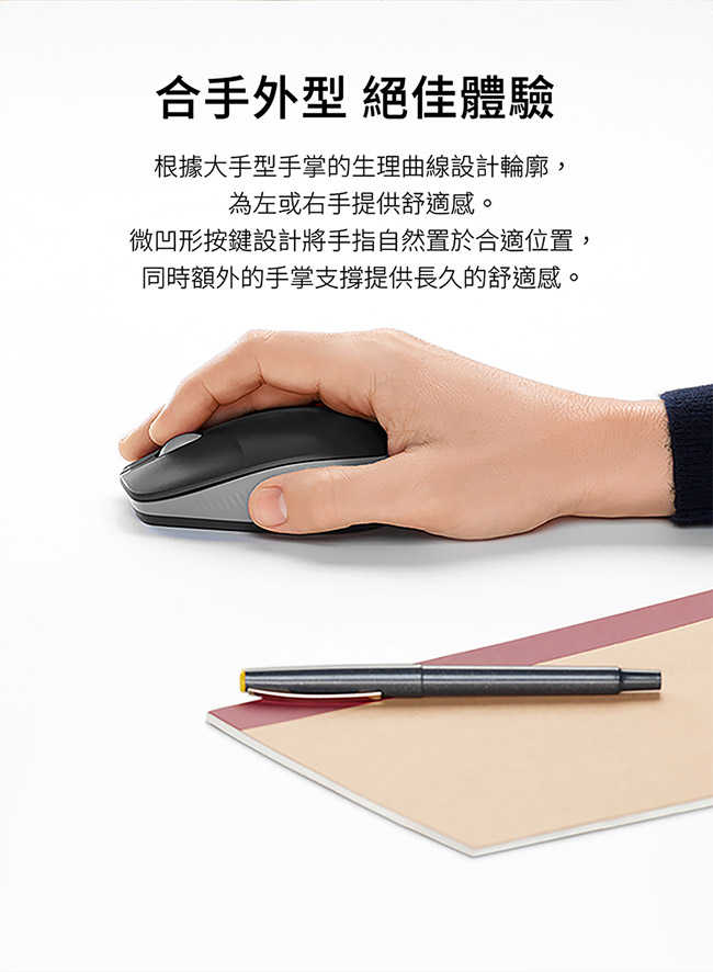 ◎ 中到大型手掌都能自然握持的舒適外型設計