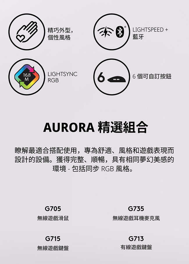◎ G705無線遊戲滑鼠是 Aurora 精選組合產品之一
