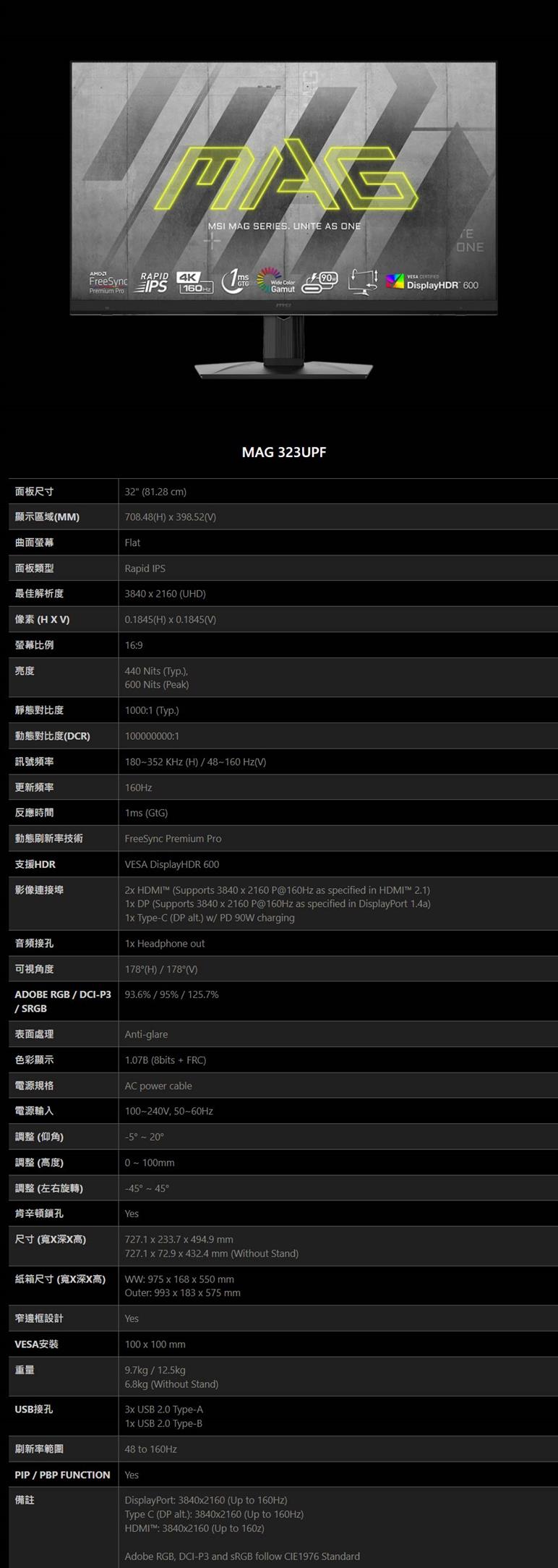● 亮度:440Nits(Typ.)/600Nits(Peak)