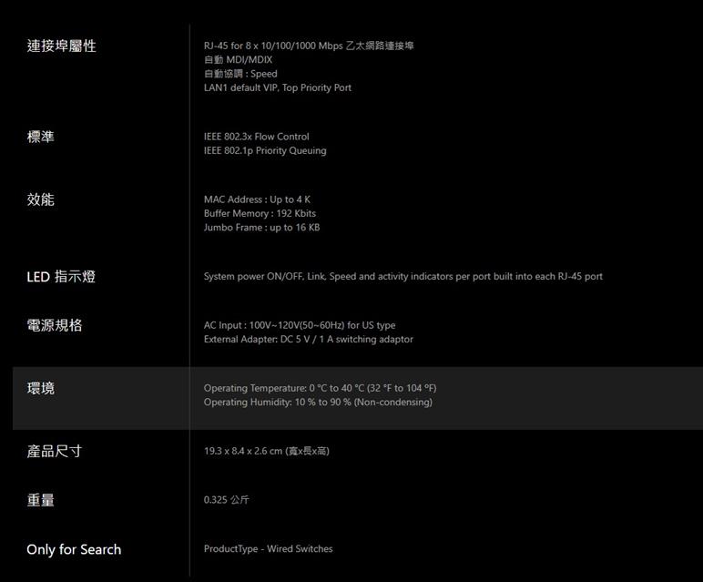 ◆ 8 個 Gigabit 連接埠— 可提供每秒最高 1GB 的傳輸速度,節省資料傳輸時間
