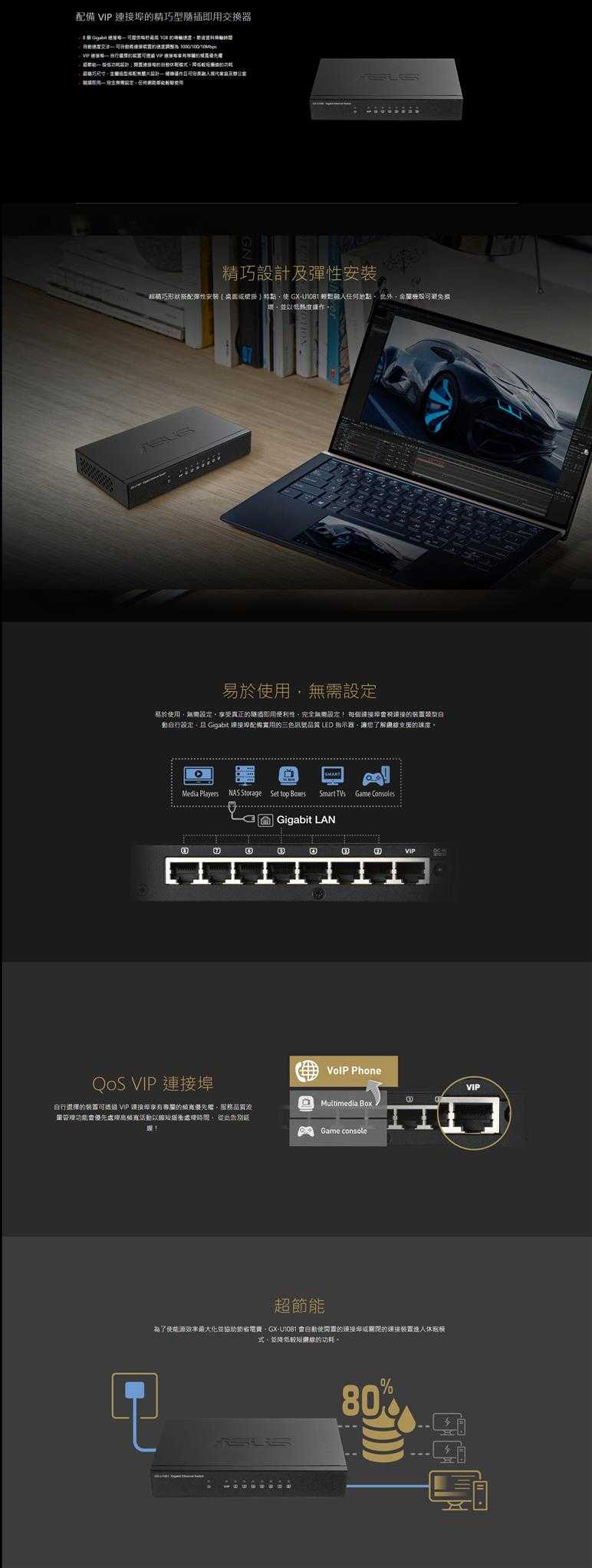 配備 VIP 連接埠的精巧型隨插即用交換器.