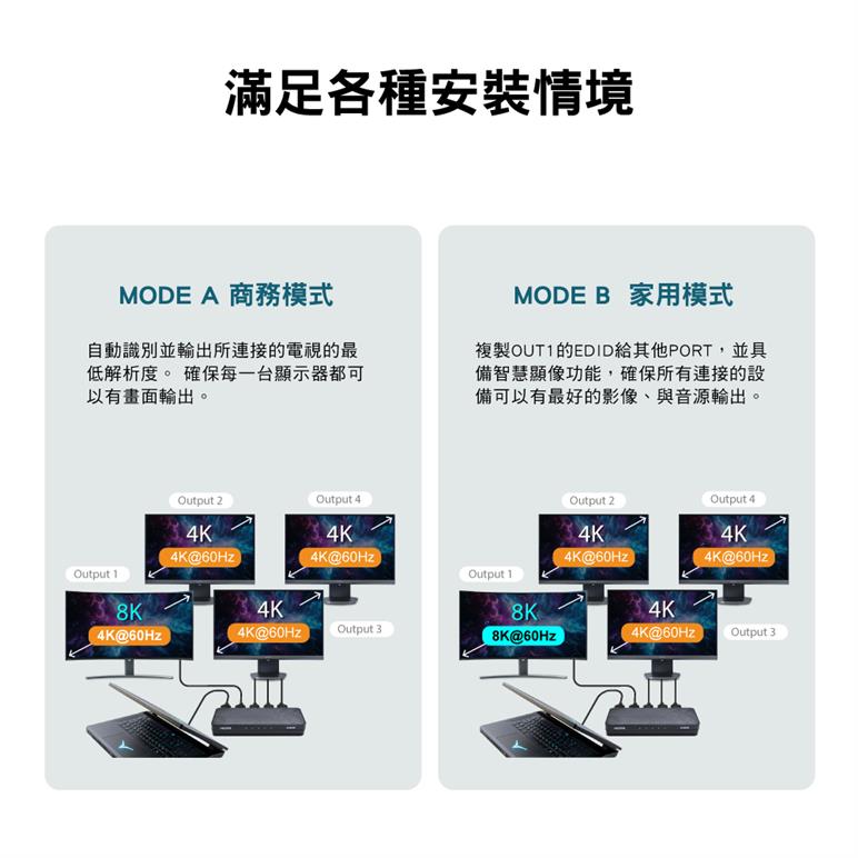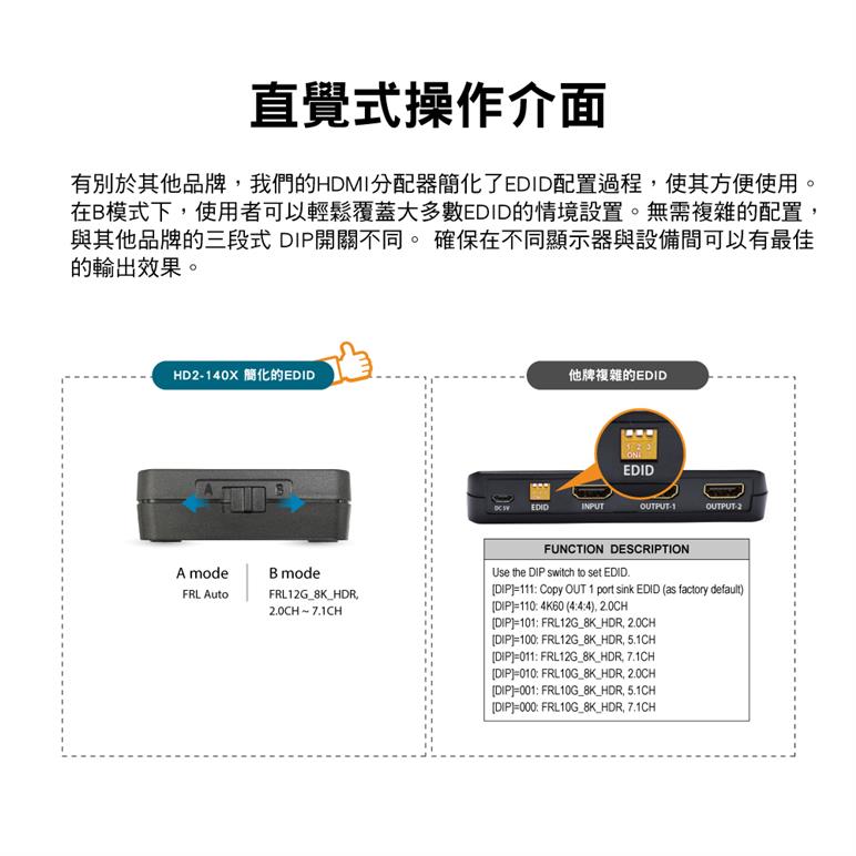 ● Dual EDID,好用好切,相容各種應用情境