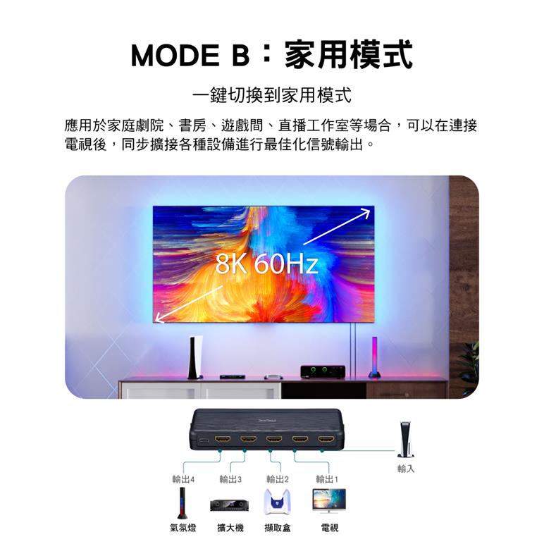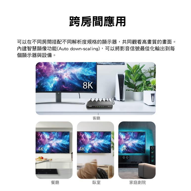 - 支援解析度Auto down-scaling,8K@60Hz內容
