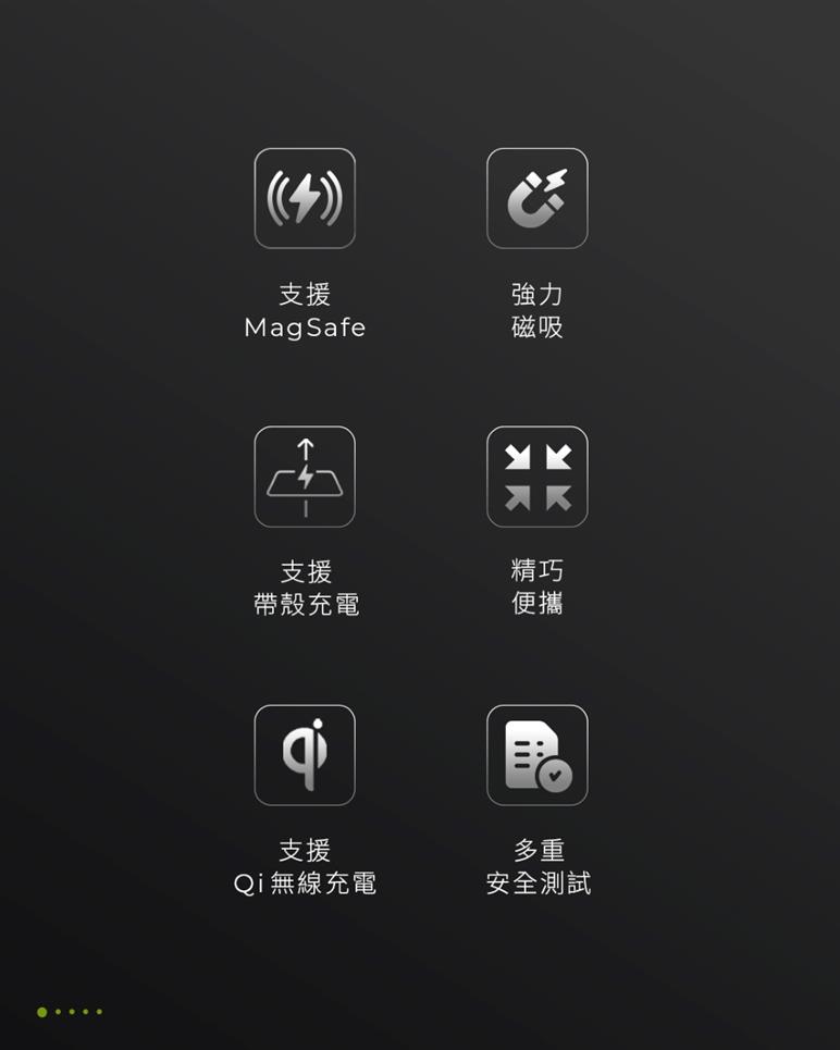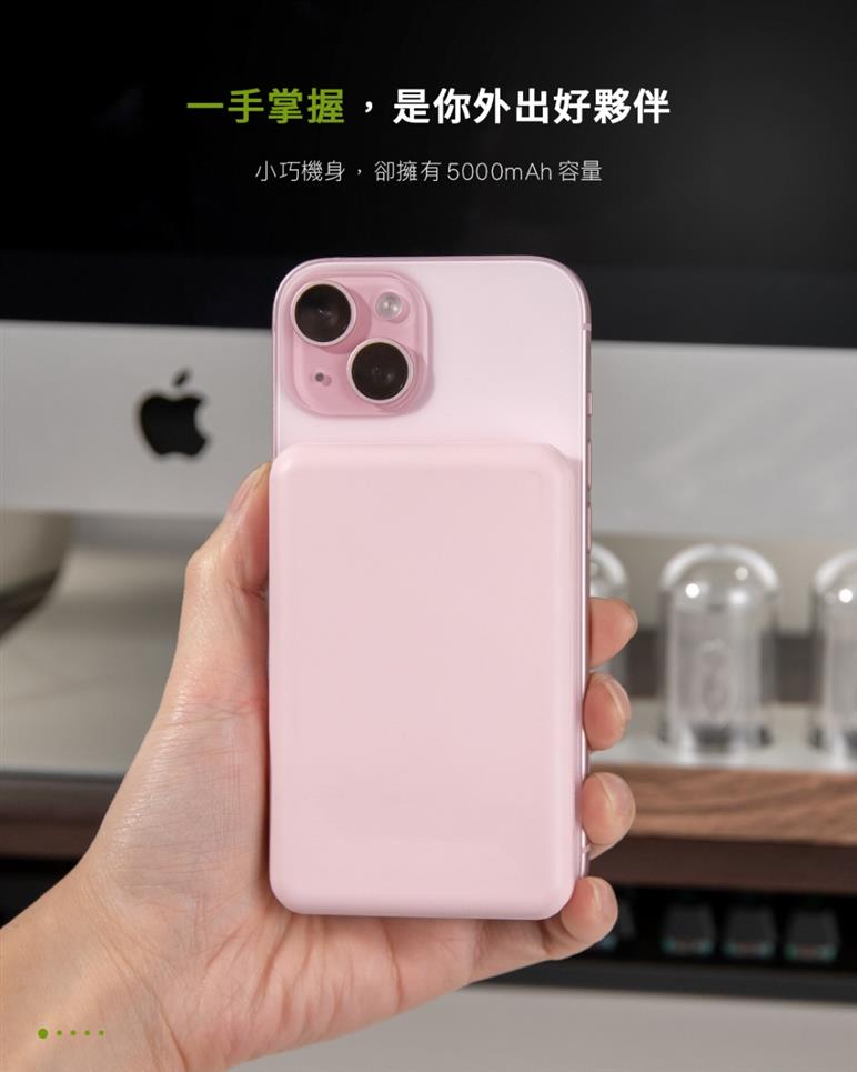 - 5000mAh|支援無線磁吸5W + USB-C 10W充電