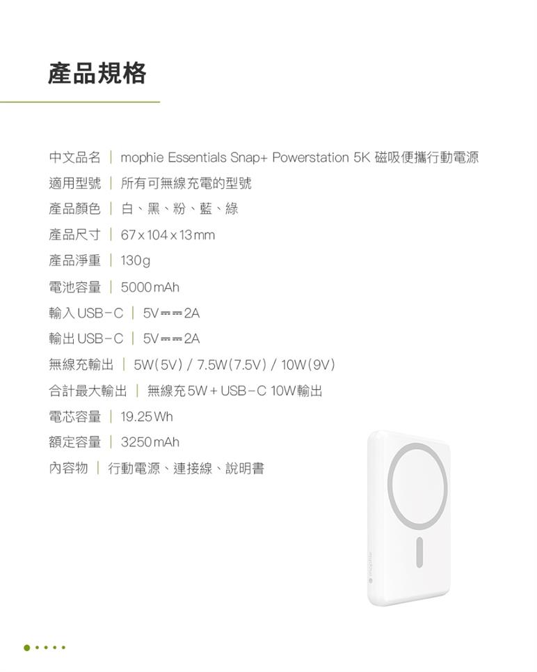 - 卓越品質|mophie 的產品均符合國際標準,經過嚴格的品管與多次測試,為用戶提供更安全的充電體驗