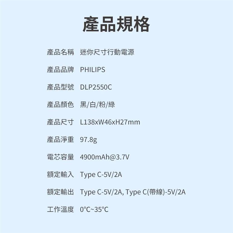 飛利浦貼心多重安全防護:過充保護、過流保護、過放保護、電流偵測、過壓偵測、短路保護