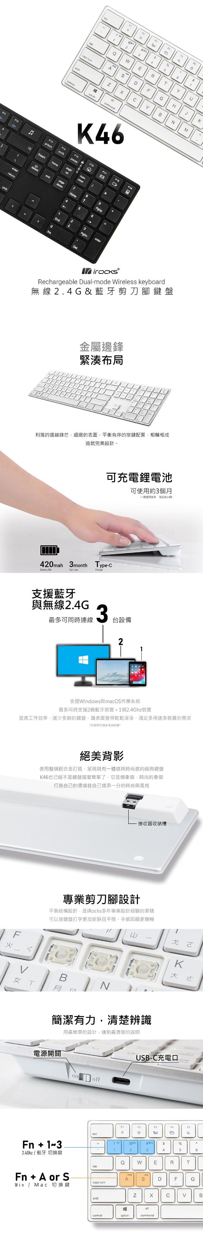 ●採用無線2.4GHz跟藍牙雙模技術,可連接3個裝置
