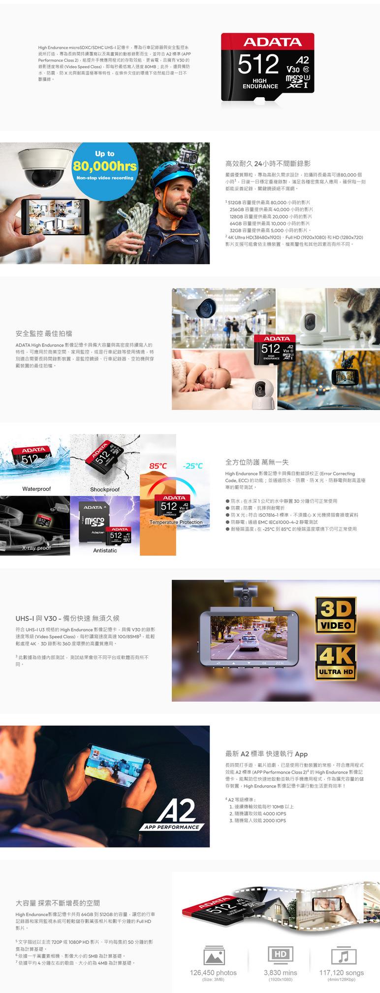 3 年有限保固 * High Endurance microSDXC/SDHC UHS-I Card 以連續錄影小時或是保固期限兩者條件其一先到者為認定標準。 |