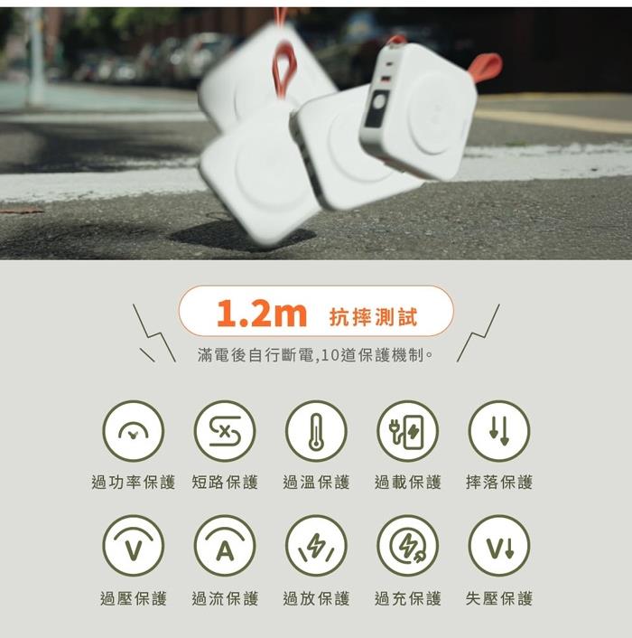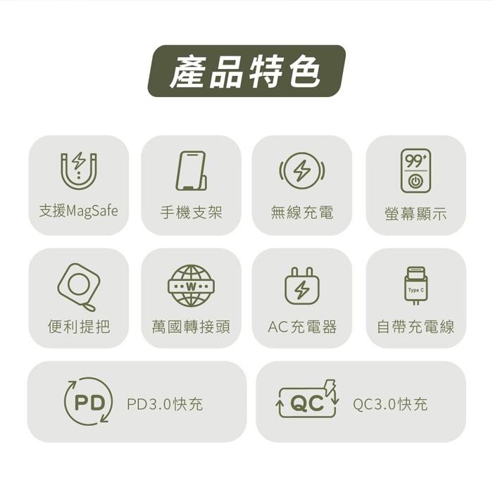 自帶AC插座、便利提把、橫置手機支架、USB-C to Lightning
