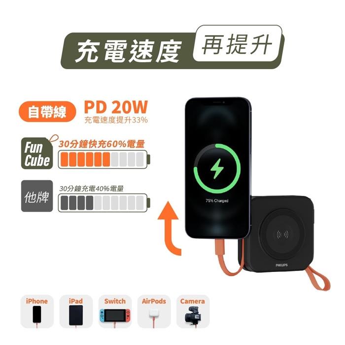 【Philips飛利浦】FunCube 2.0 二代 10K 多合一磁吸行動電源-百搭黑 {{specImage.SkuName}}
