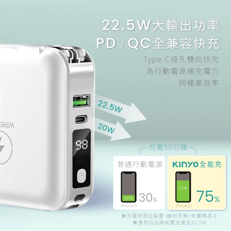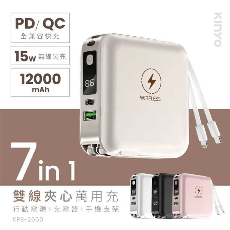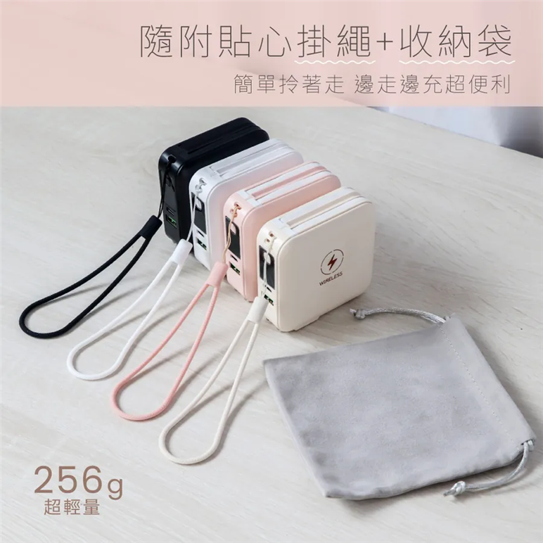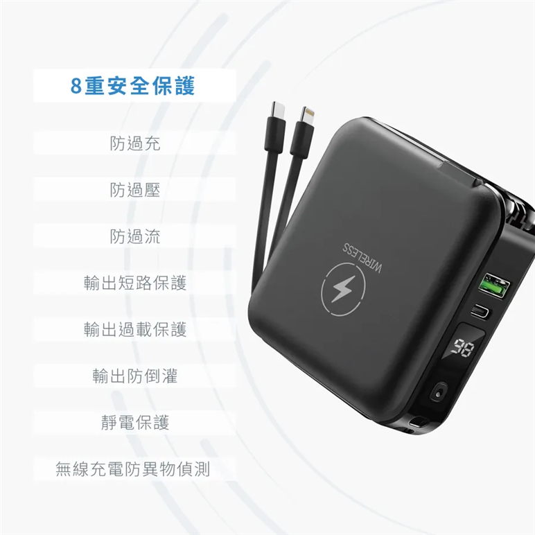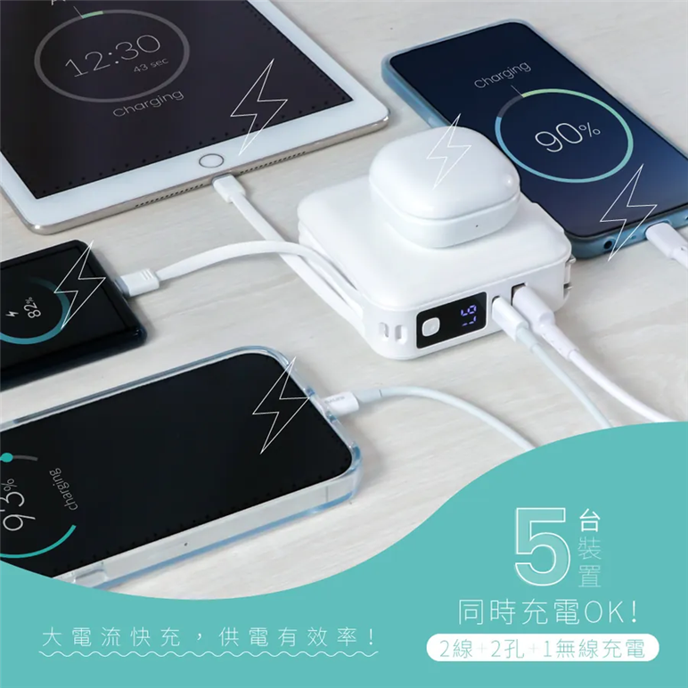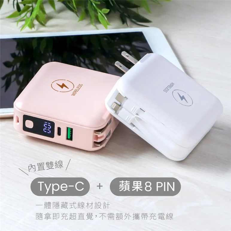 2線設計,不需額外帶線,內置Type-C、蘋果線材,隨拿即充