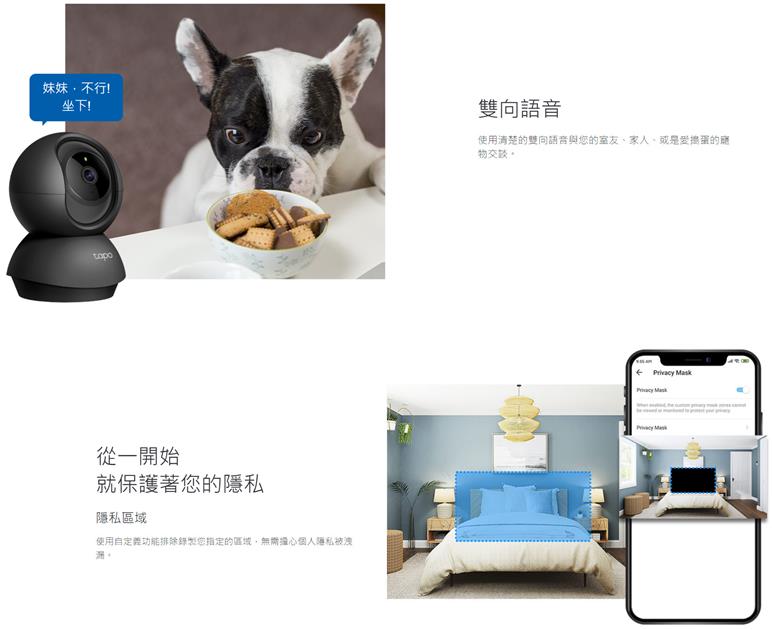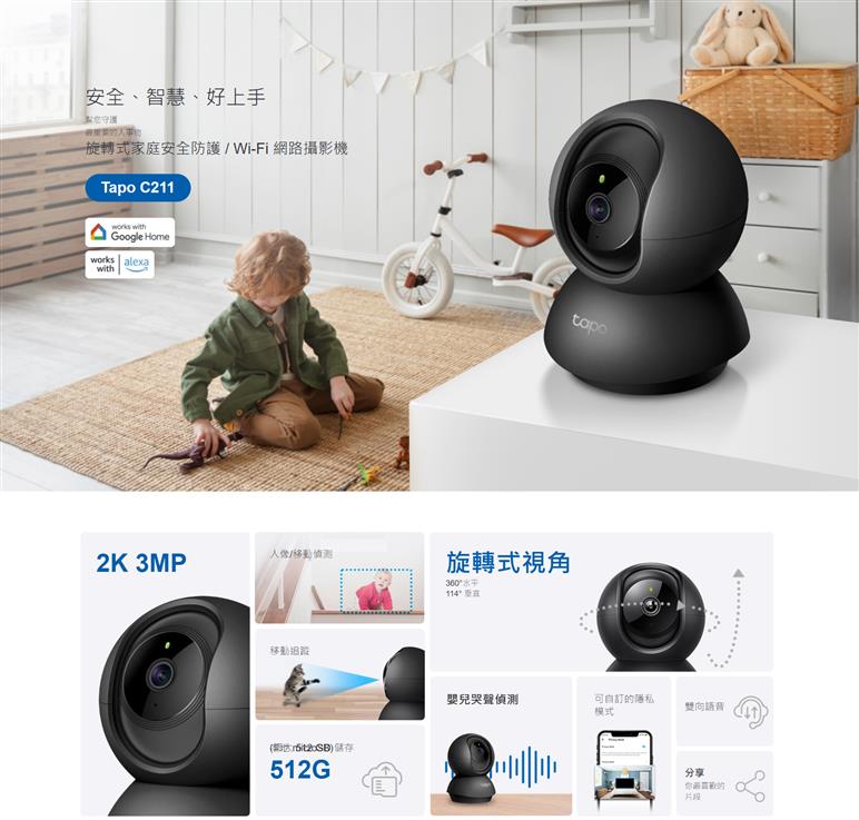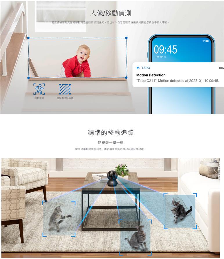 - 偵測 & 即時通知: 當偵測到移動或人物時,獲取即時推送通知,訂閱 Tapo care 以偵測嬰兒哭聲。