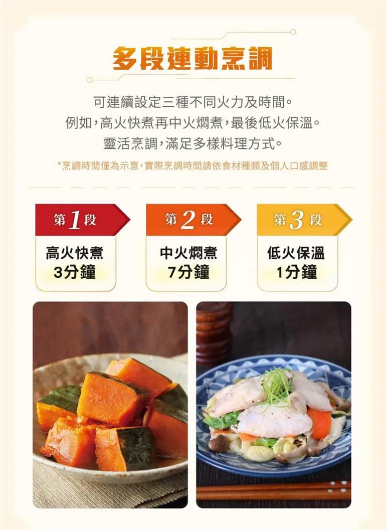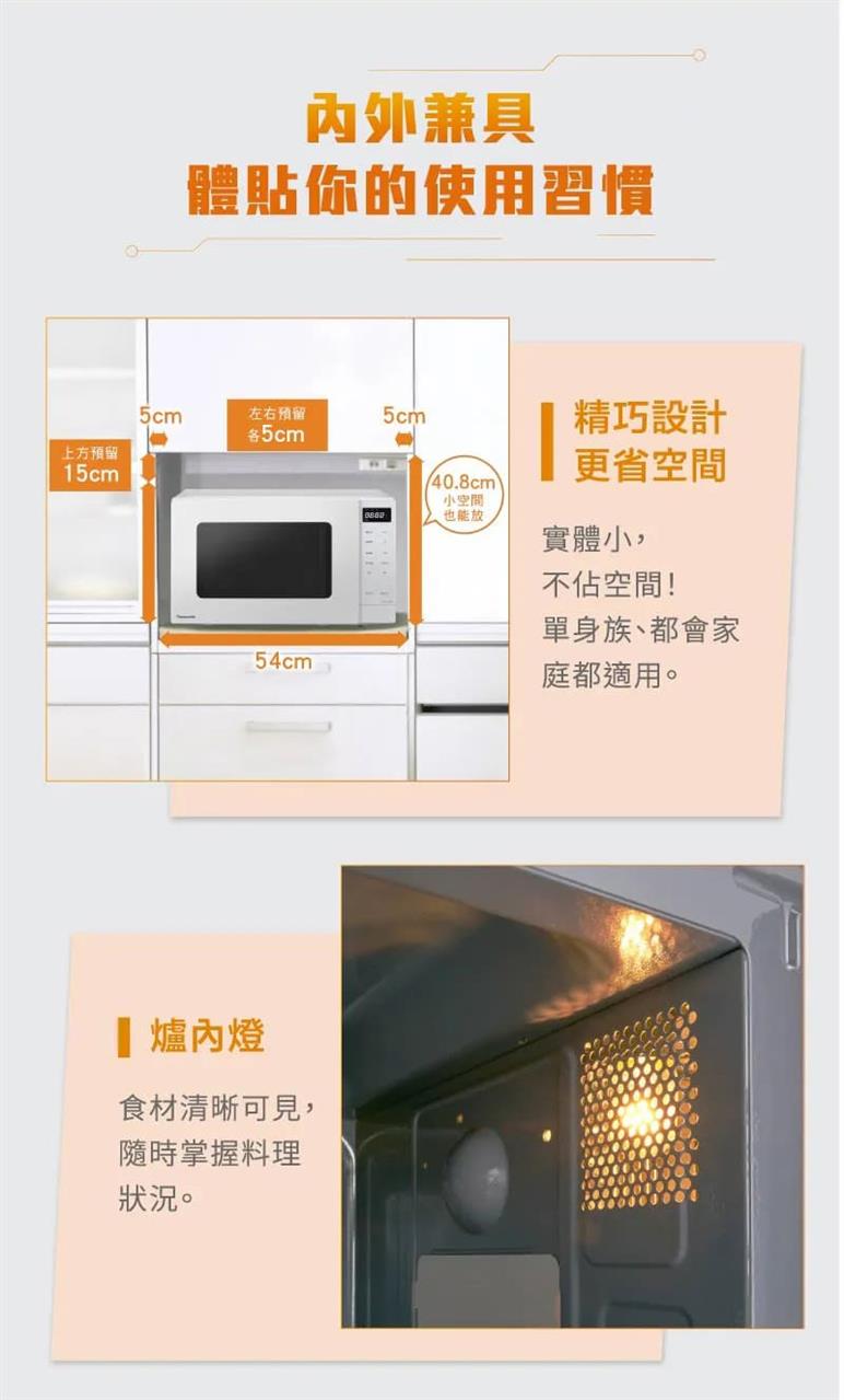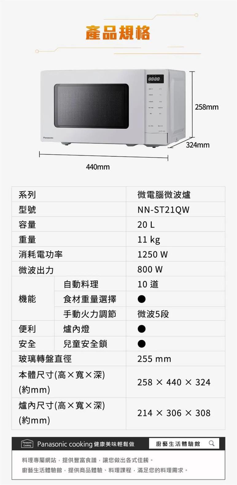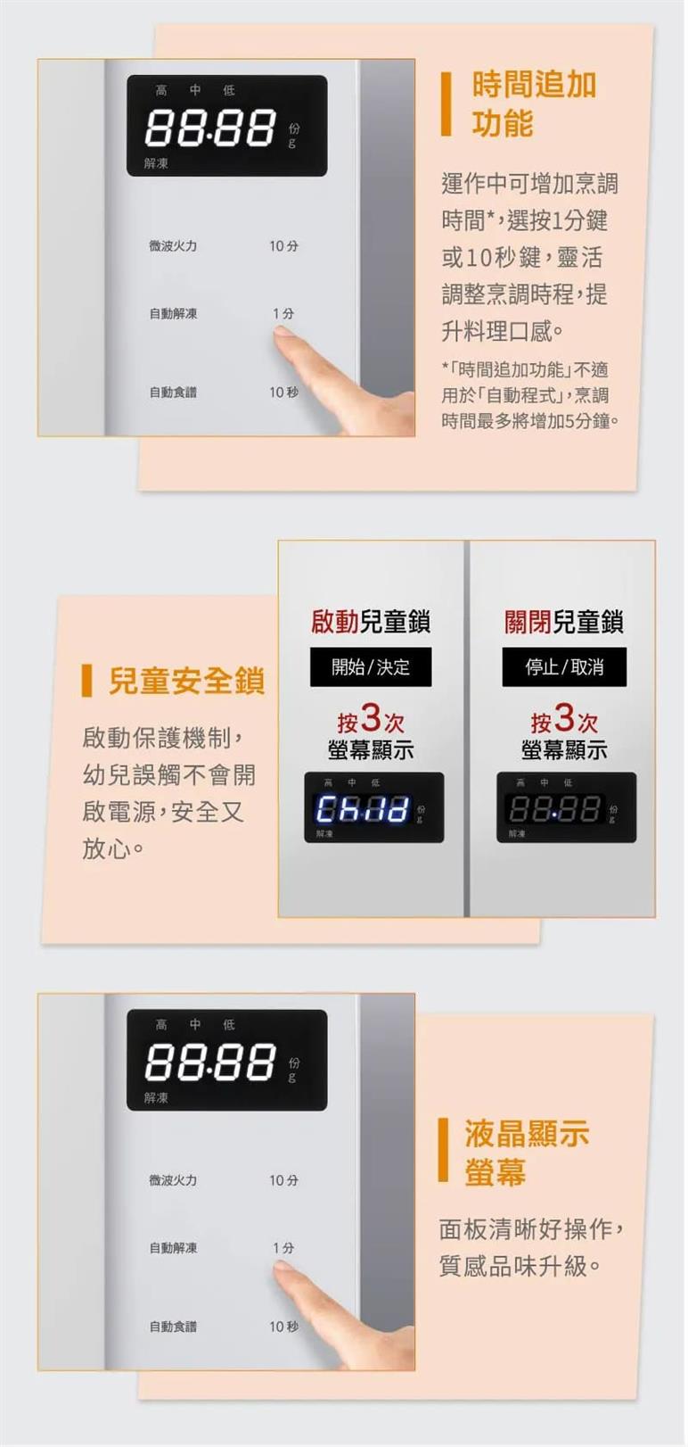 機能:自動料理10道、食材重量選擇●、手動火力調節、微波5段