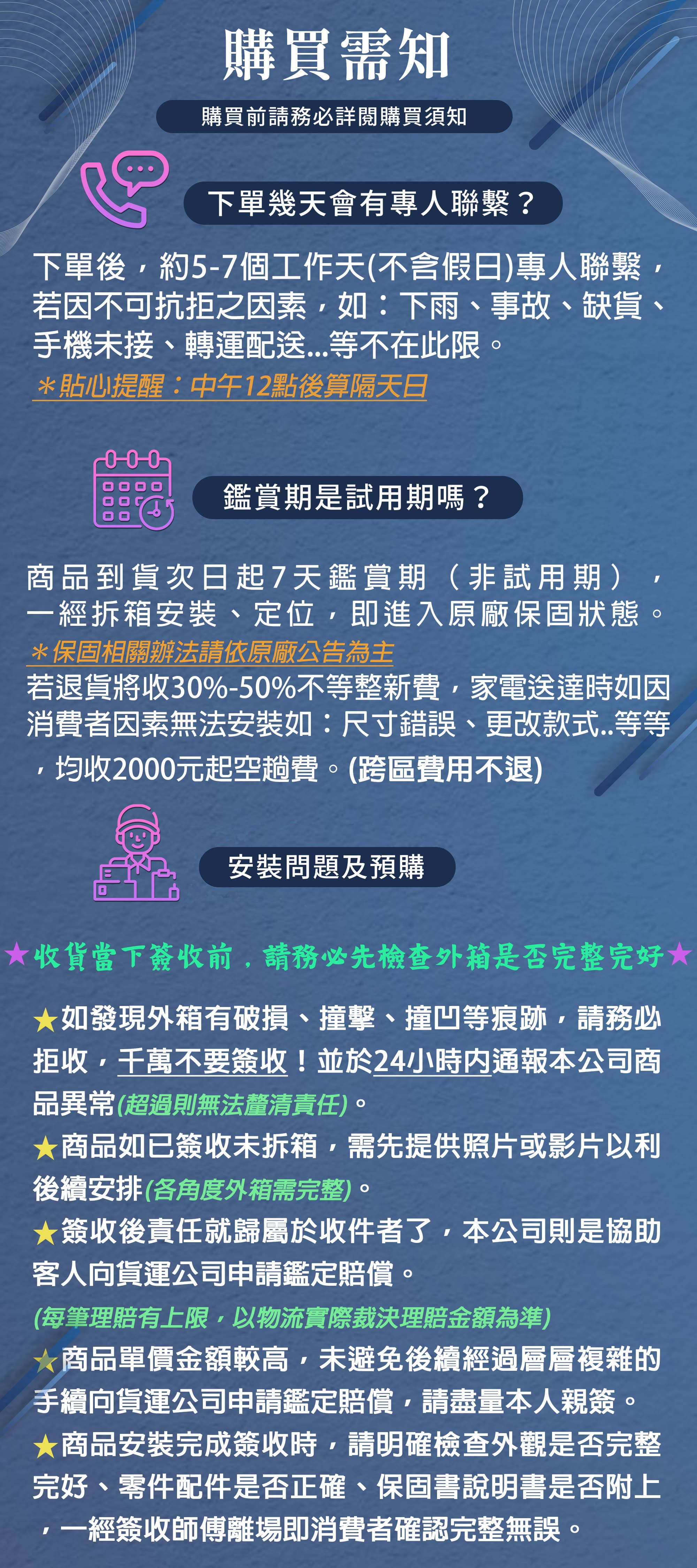《若您同意以上約定事項再行下單。》