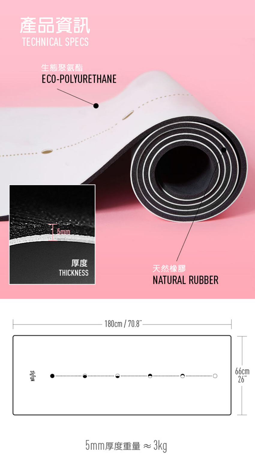 - 乾濕止滑天然橡膠正位線瑜珈墊專業型5mm