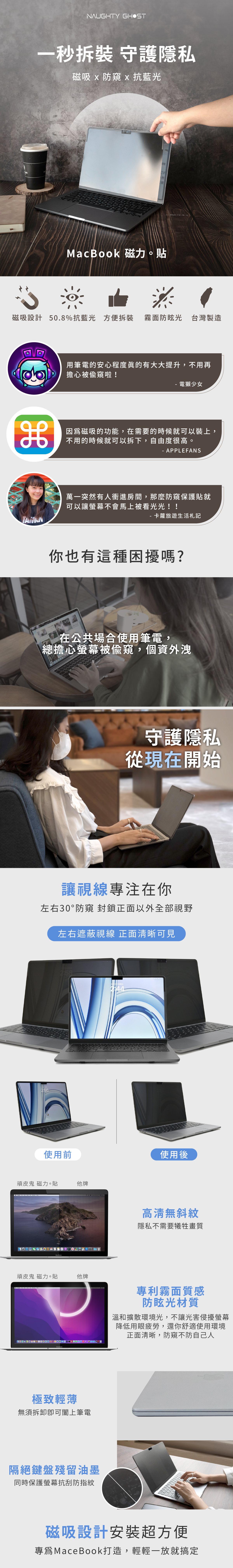 🔷 防窺、抗藍光一次擁有