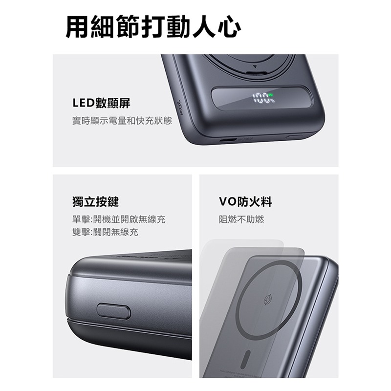 產品名稱:20W旋轉支架數顯金屬磁吸行動電源10000mAh 37Wh