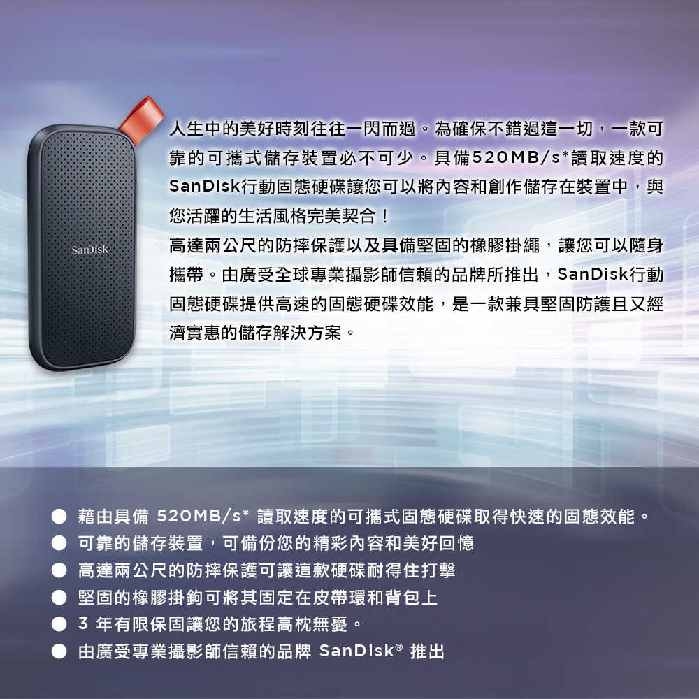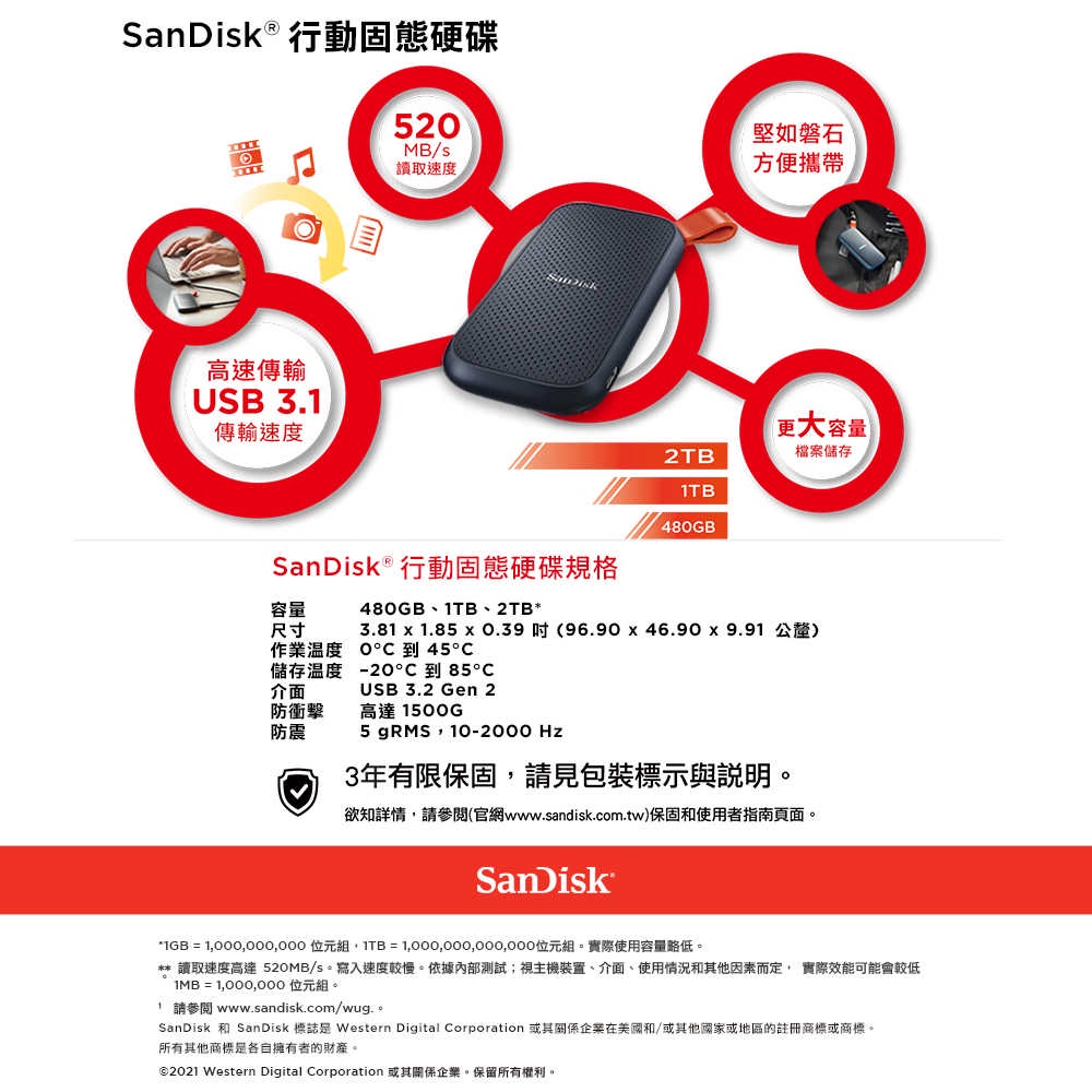 欲知詳情,請參閱(官網www.sandisk.com.tw)保固和使用者指南頁面。