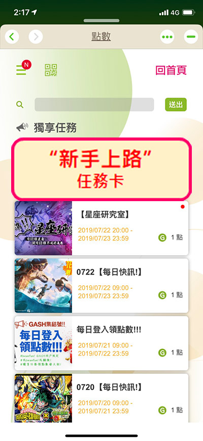Step3.開啟"新手上路"任務卡,領取獎勵
