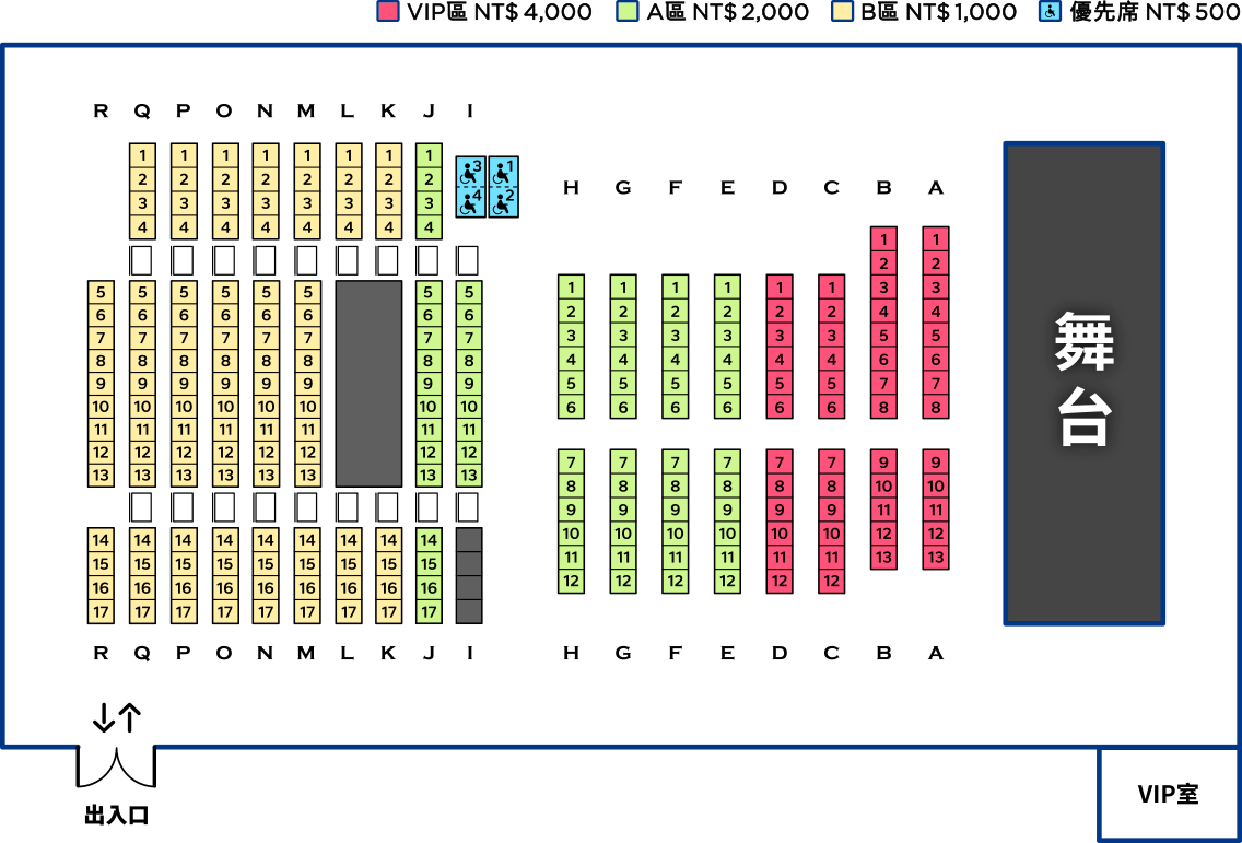 b. 優先席訂票:每位身心障礙人士含必要陪同者限購最多2張票券,如有需要陪同者,購票時請選擇2張。身心障礙優先席以主辦單位/場館規劃區域、座位、優惠票價配位銷售,售完為止。