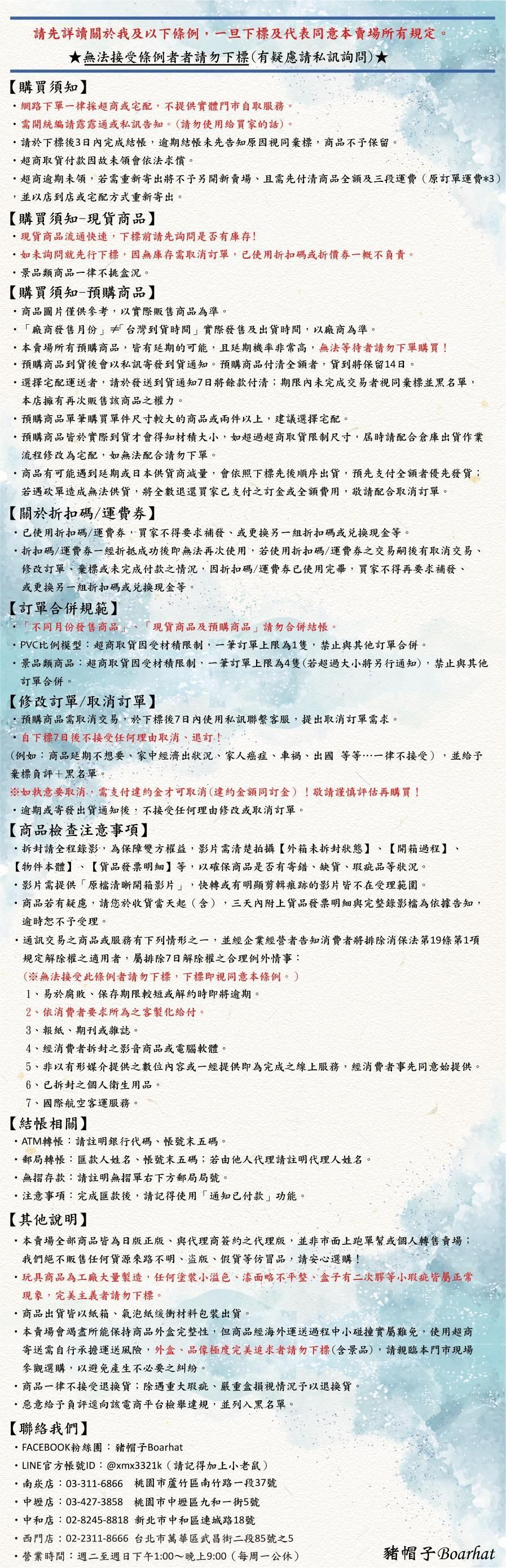 ❤ 預購商品需取消交易,於下標後7日內聯繫小編,逾期不接受任何理由取消、退訂(例:延期不想要、經濟困難、癌症、車禍、出國等等),且需支付違約金(同訂金)才可取消!