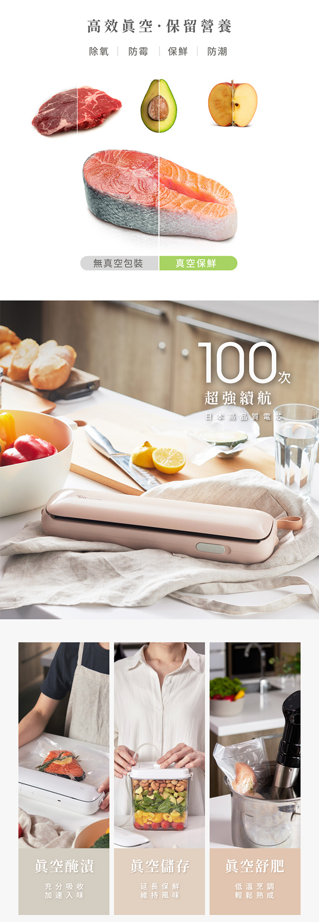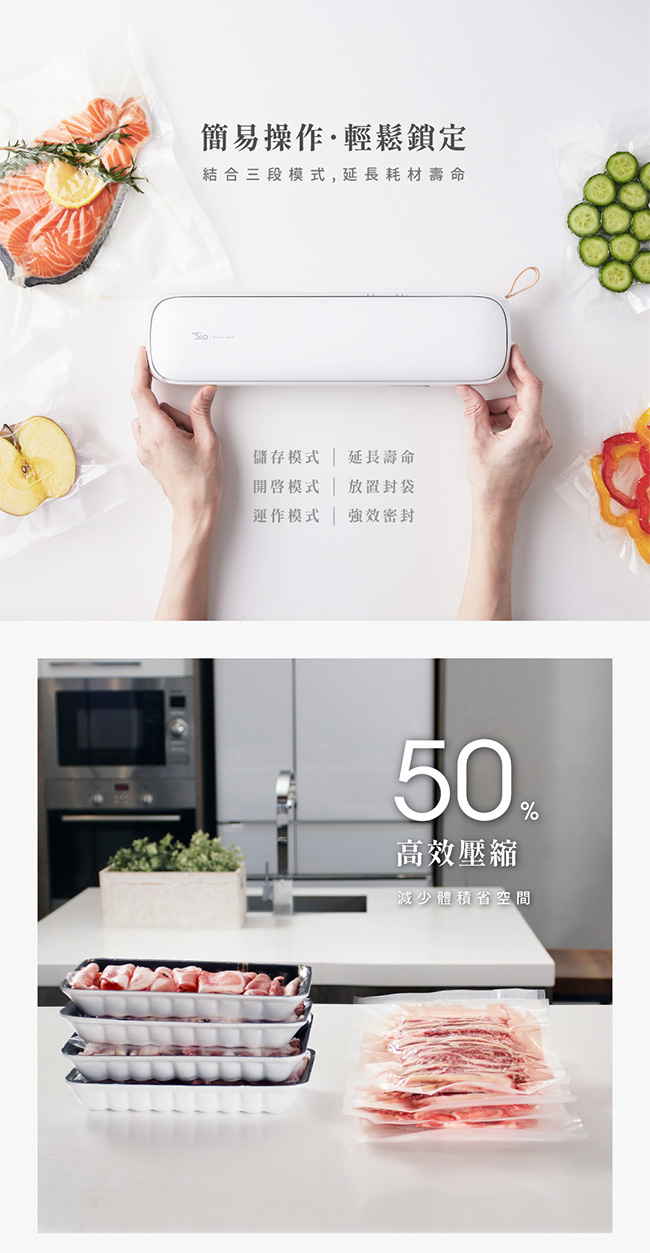 可真空、也可單熱封|三段卡扣操作,減少攜帶食物的體積