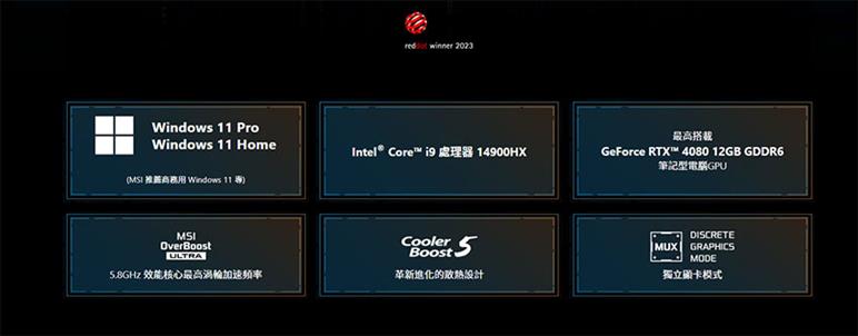 * MSI OverBoost Ultra技術僅適用於搭載 Intel® Core™ i7 處理器 14700HX或更高之規格。 * 240W 效能為搭載Intel® Core™ i9 處理器14900HX及NVIDIA GeForce RTX™ 4080 筆記型電腦GPU之規格。 * 此為連接AC電源,MSI Center設置極致效能模式下的測試結果。 * 可能因情境而有所改變