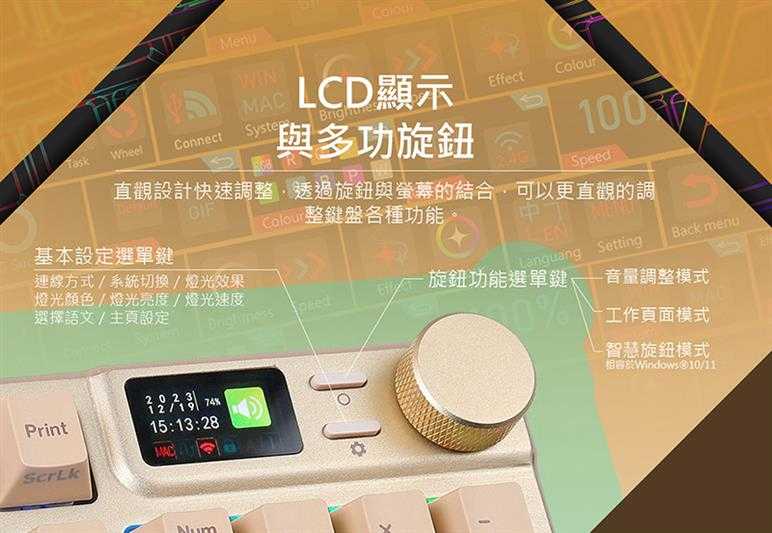 ●可切換功能的旋鈕,於Windows 10與11下可自訂滾輪功能為音量、滾動、縮放等功能