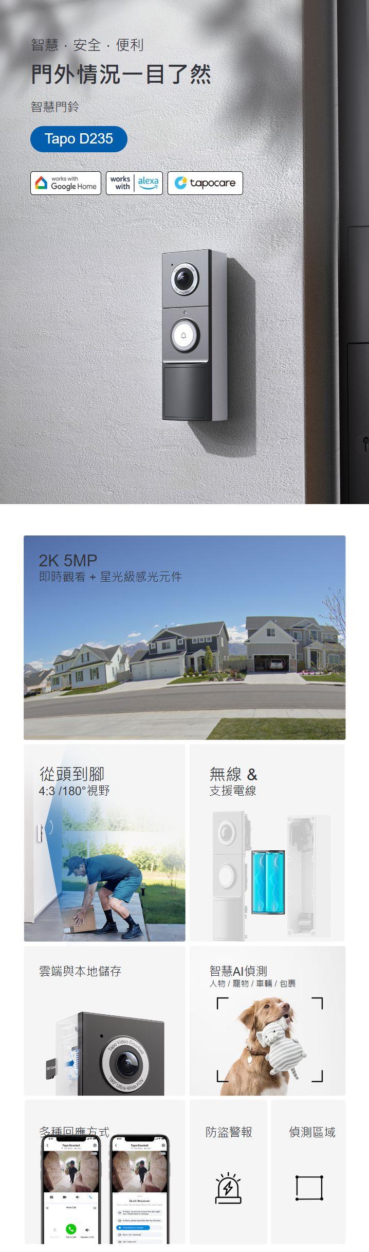 - 快速應答: 任何情況下都可以透過智慧門鈴快速回應