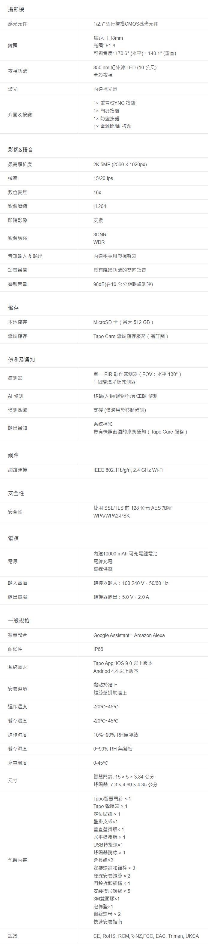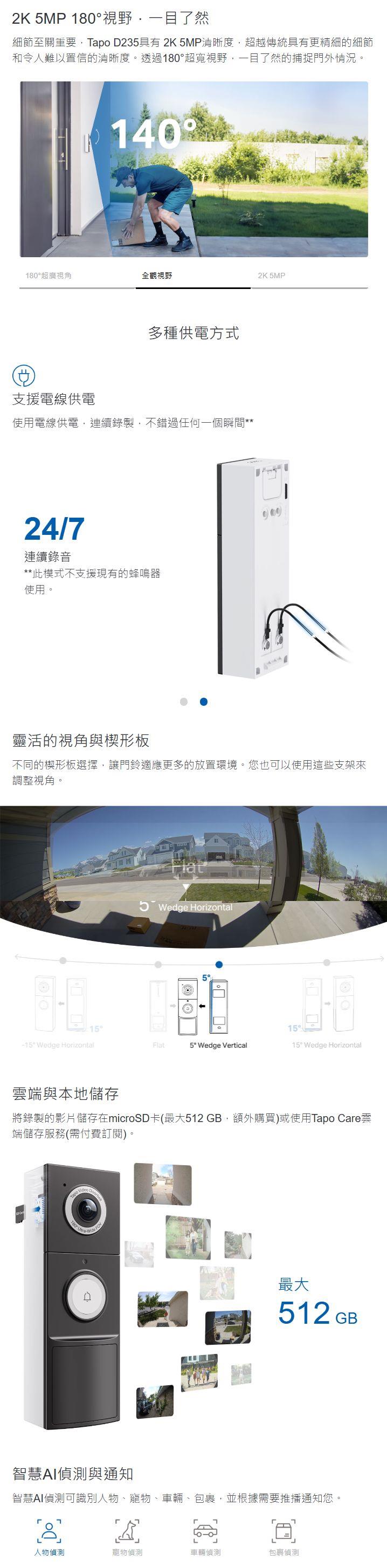 - 雲端與本地儲存: 支援microSD卡 (最高512GB)或Tapo Care雲端儲存