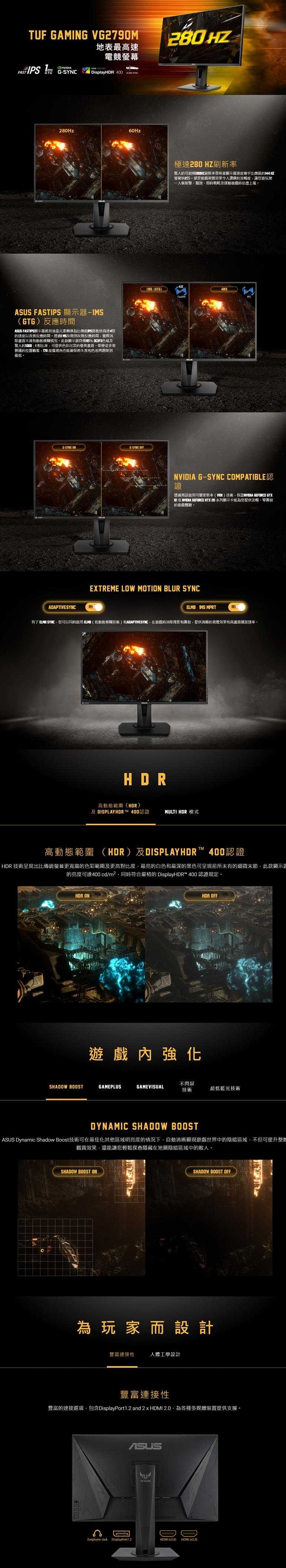 .ASUS Extreme Low Motion Blur Sync(ELMB SYNC)技術能夠結合 ELMB 及 G-SYNC Compatible,消除重影和撕裂,提供清晰的遊戲視覺效果與高畫面播放速率。