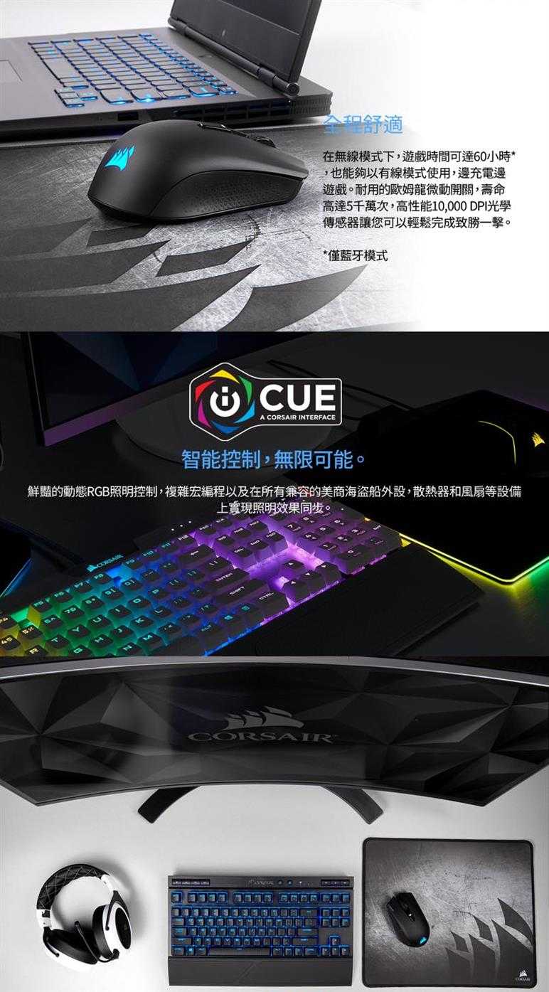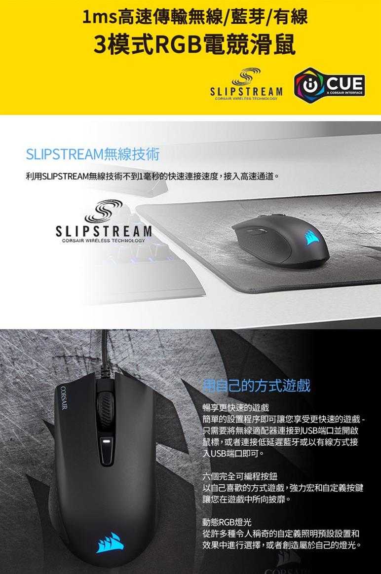 iCUE支持通過2.4GHz無線或USB有線模式提供