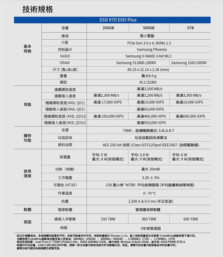 ● 介面:PCIe Gen 3.0 x 4, NVMe 1.3