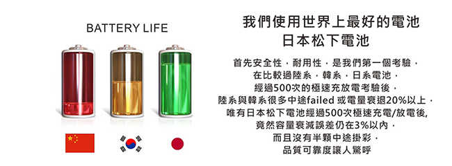 與Tesla&Gogoro同採用日本松下電芯,多重電流&電壓保護設計