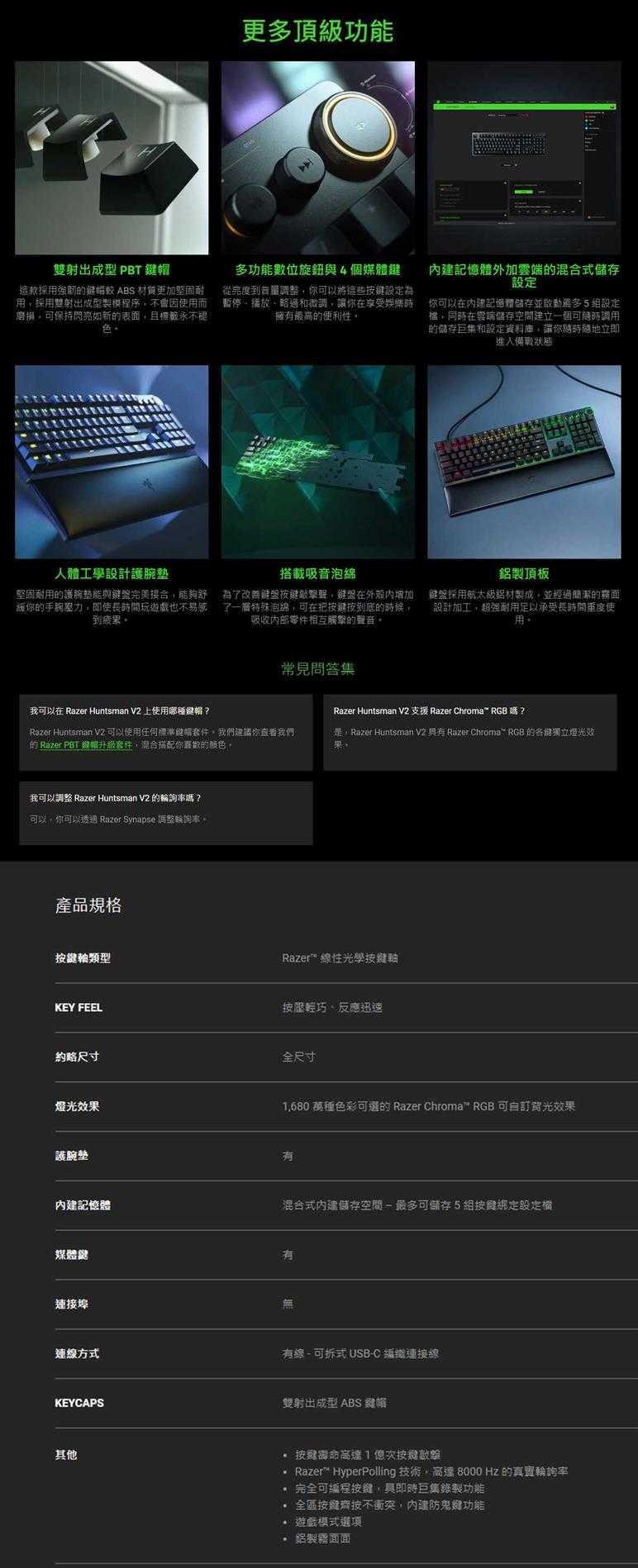 ● 燈光效果:1,680 萬種色彩可選的 Razer Chroma™ RGB 可自訂背光效果