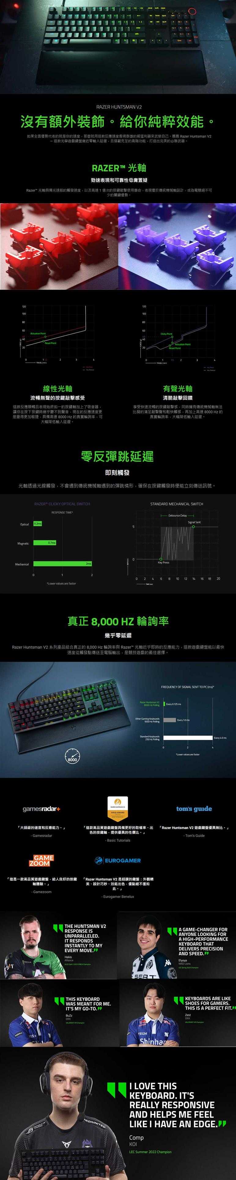 ● 按鍵軸類型:Razer™ 線性光學按鍵軸