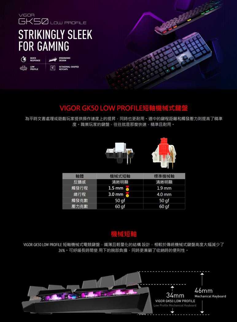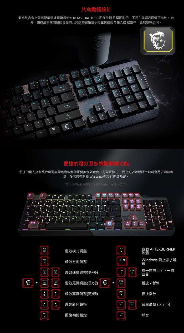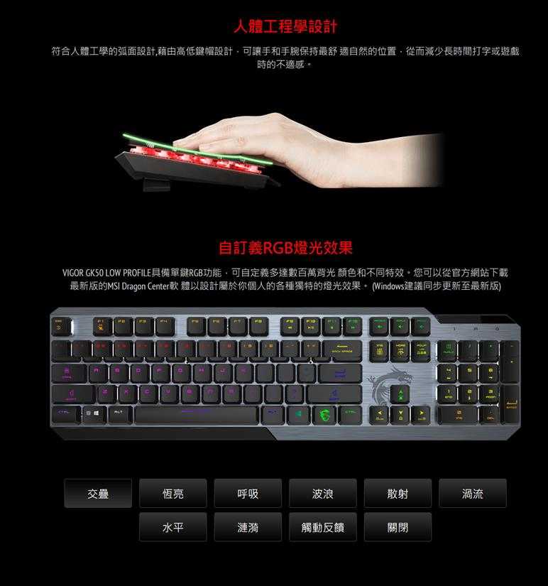 MSI 微星 VIGOR GK50 LOW PROFILE 機械式電競鍵盤 矮軸